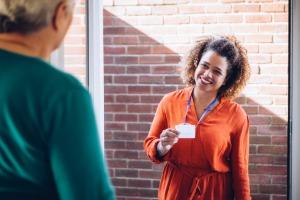 A care worker assists a client in their home. If a situation becomes tense or threatening, the worker may need help without drawing attention.
